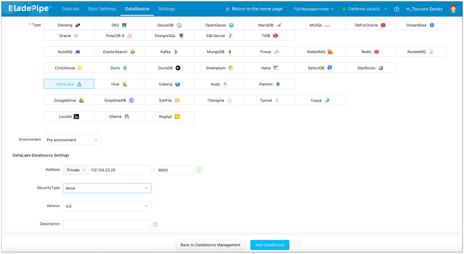 Next, we'll set up a real-time data lake using BladePipe SaaS Managed and DeltaLake.