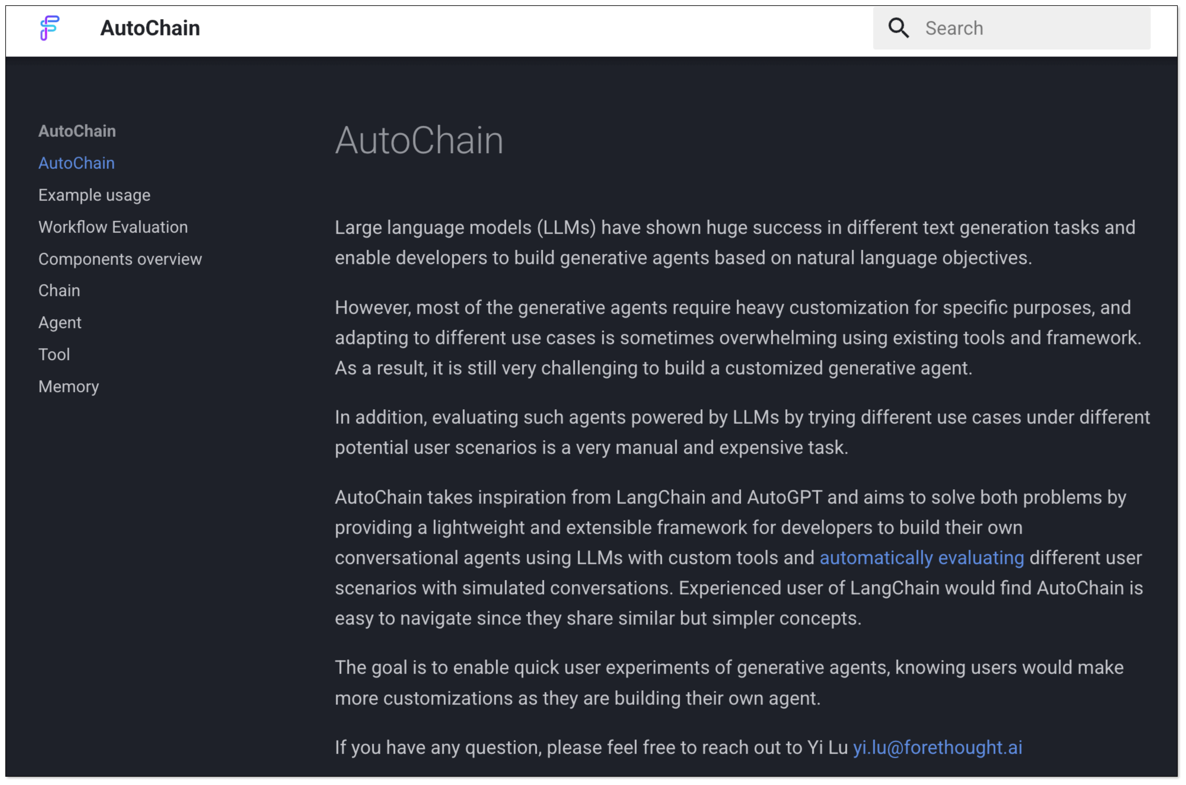 AutoChain is a lightweight and simple framework for building LLM applications. It's designed to be a more straightforward alternative to LangChain, focusing on ease of use and quick prototyping. The goal is to provide a clean and intuitive way to create multi-step LLM workflows.