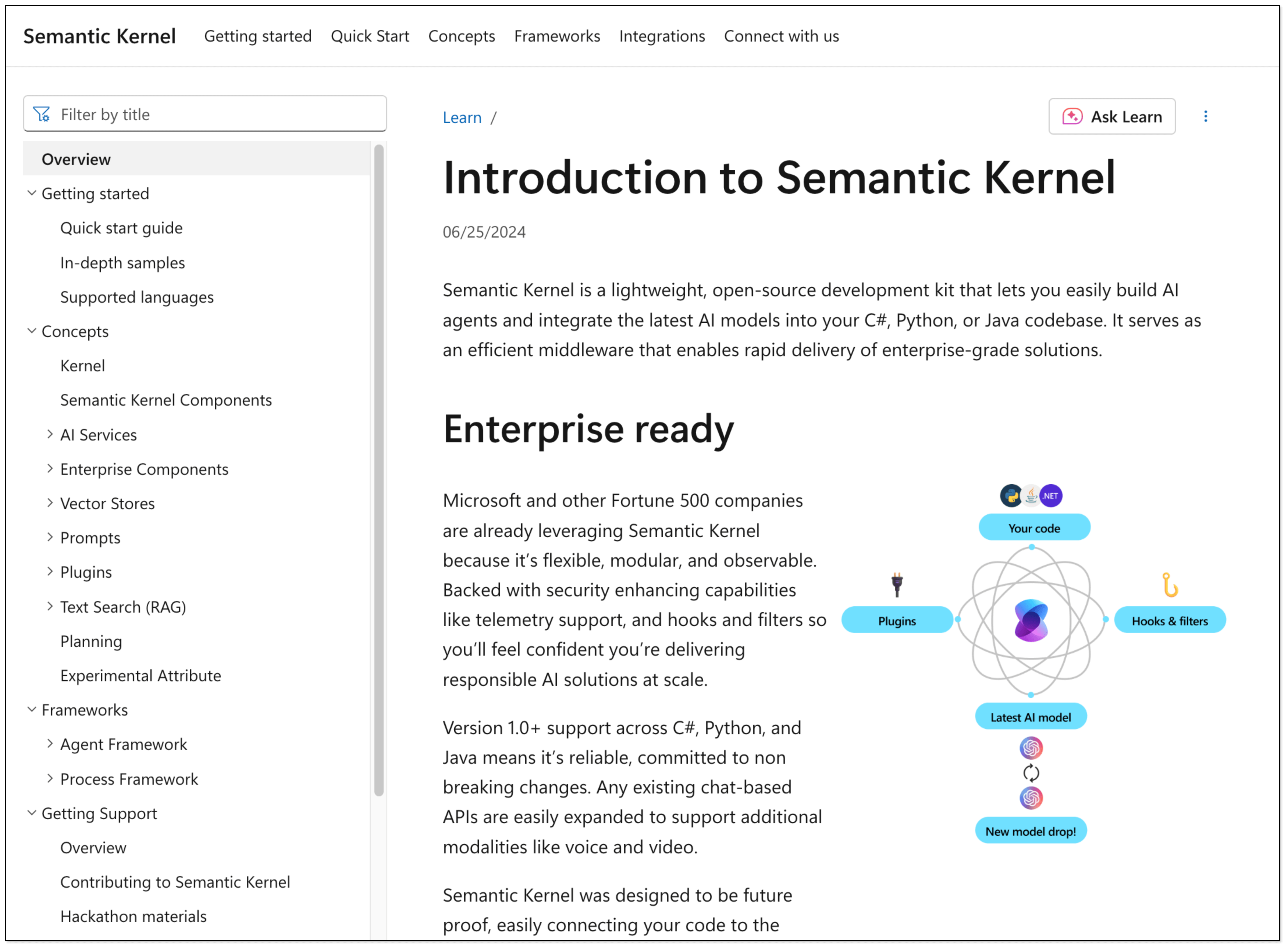 Semantic Kernel is an open-source SDK from Microsoft. It provides a lightweight framework for integrating cutting-edge AI models into existing applications. It's particularly strong for developers working in C#, Python, or Java and aims to act as an efficient middleware for building AI agents.