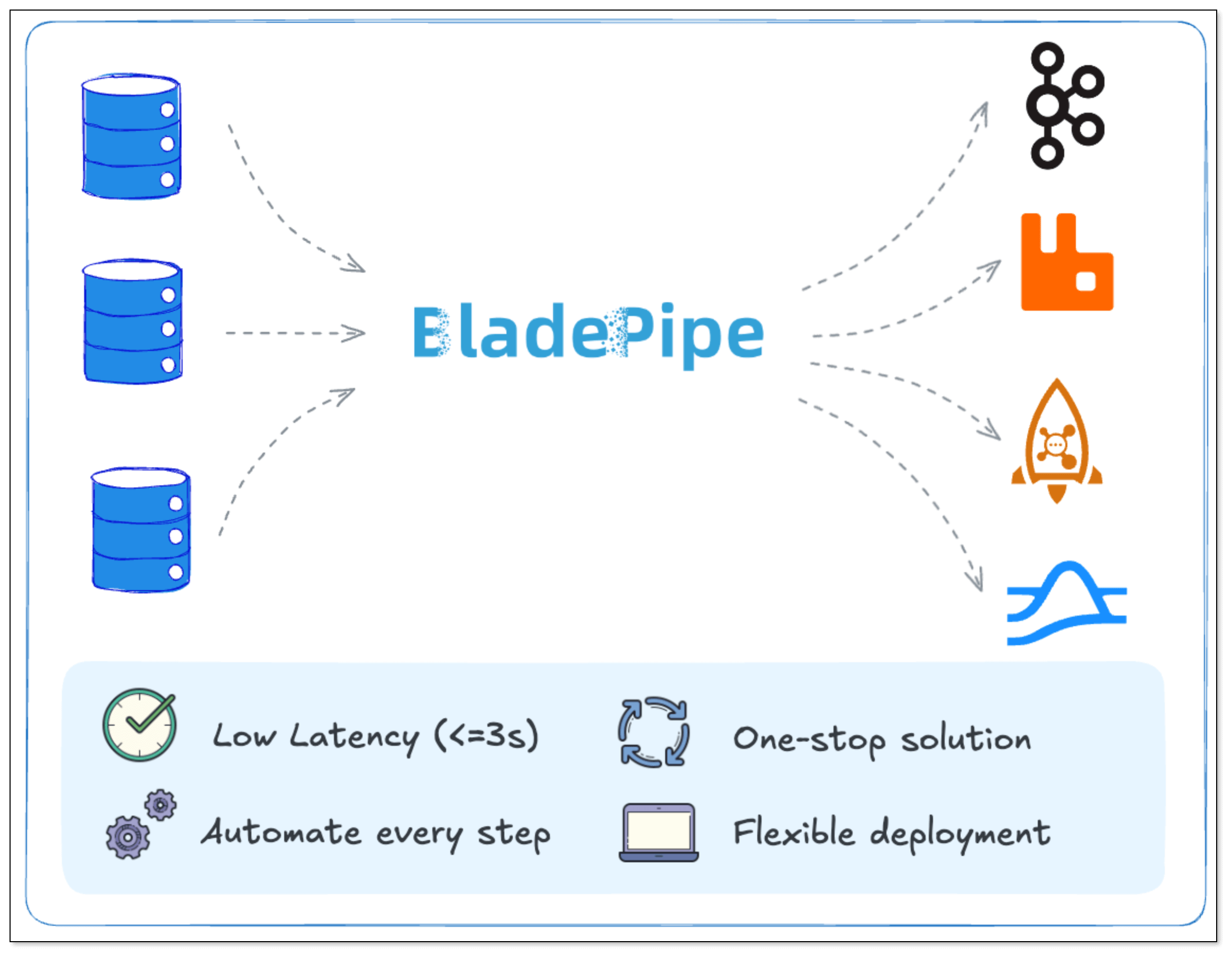 BladePipe is a real-time, end-to-end data integration platform built for teams of all sizes. With 60+ pre-built connectors and CDC-based replication, it moves data seamlessly with sub-second latency. Its no-code interface simplifies setup for real-time analytics and AI workloads, while flexible deployment options (On-prem/BYOC/fully managed) adapt to any environment.