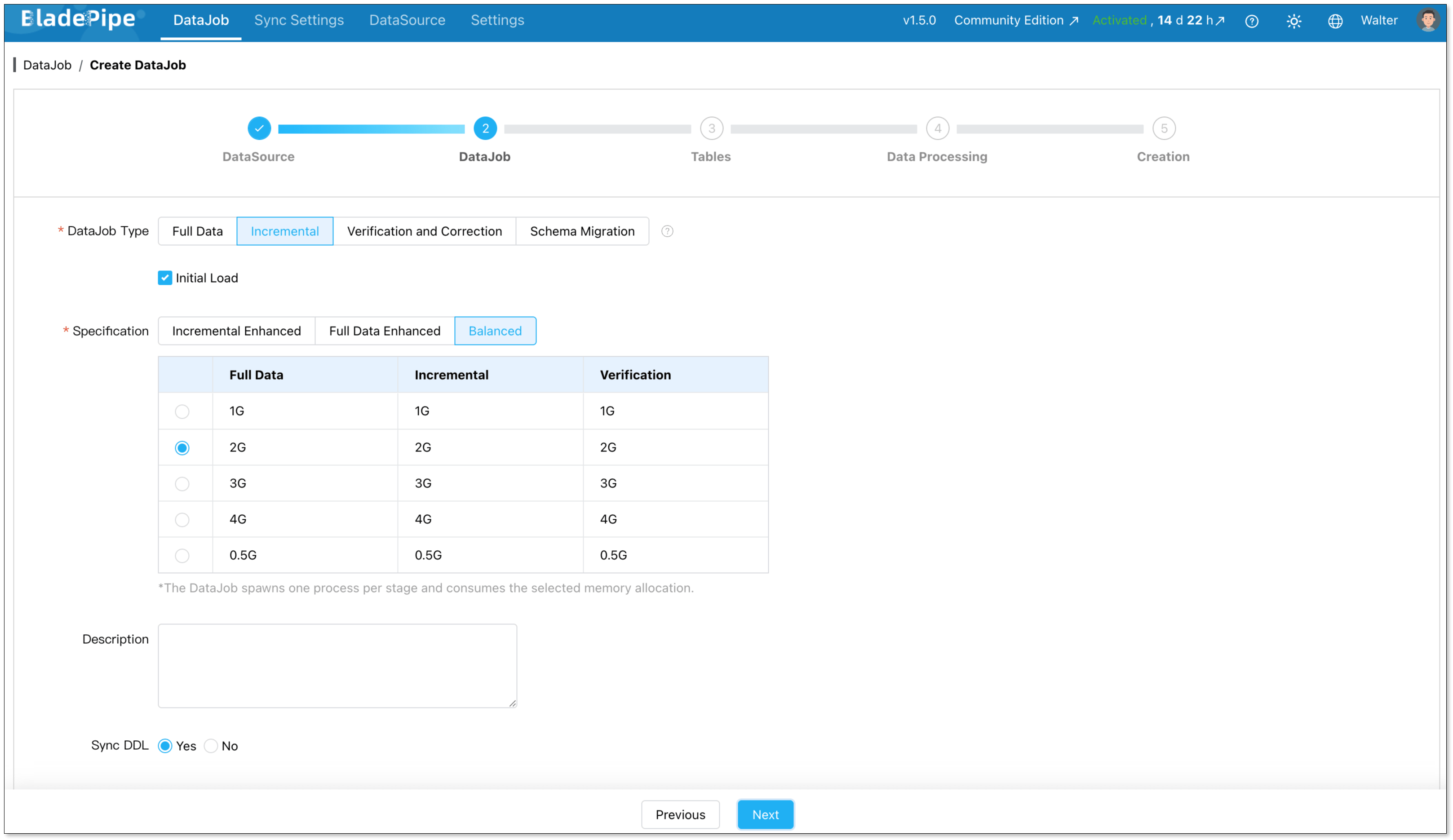 For one-time migration, select Full Data for DataJob Type. For continuous replication, select Incremental, together with the Initial Load option.