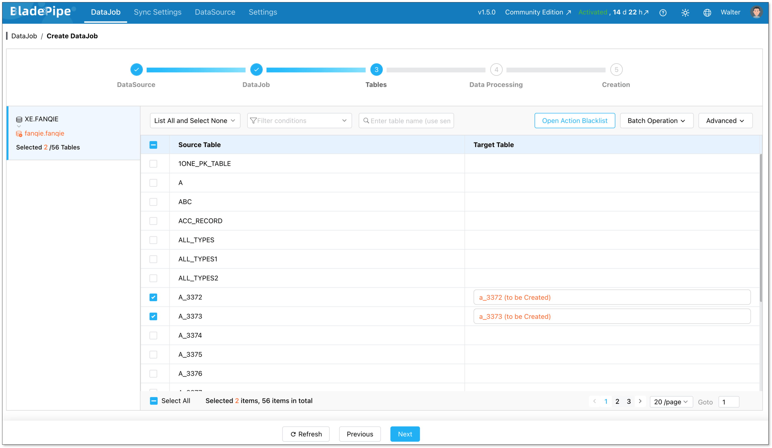 Go to DataJob > Create DataJob. Then select the source and target DataSources, and click Test Connection for both.