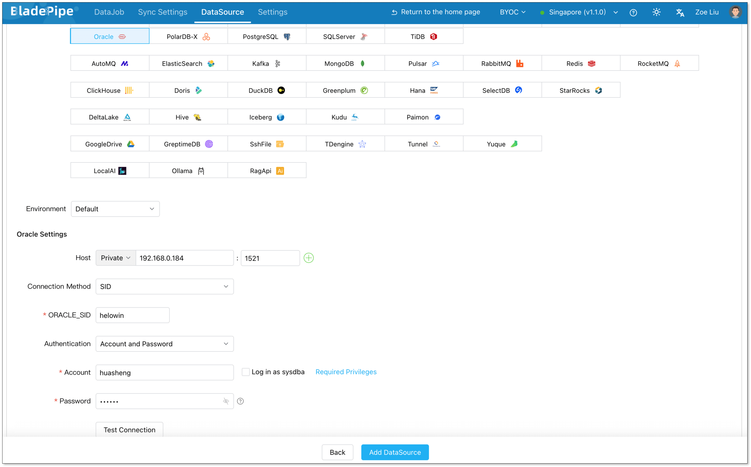 Log in to BladePipe Cloud, and connect to both Oracle and SQL Server.
