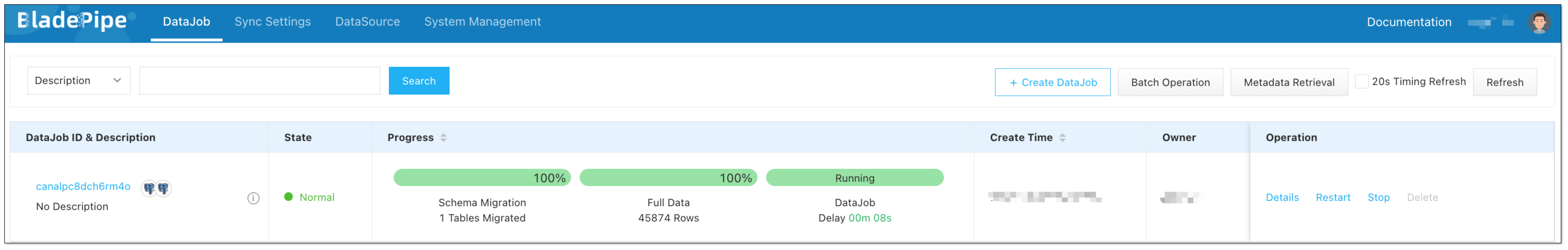 Now the DataJob is created and started. BladePipe will automatically run the following DataTasks: