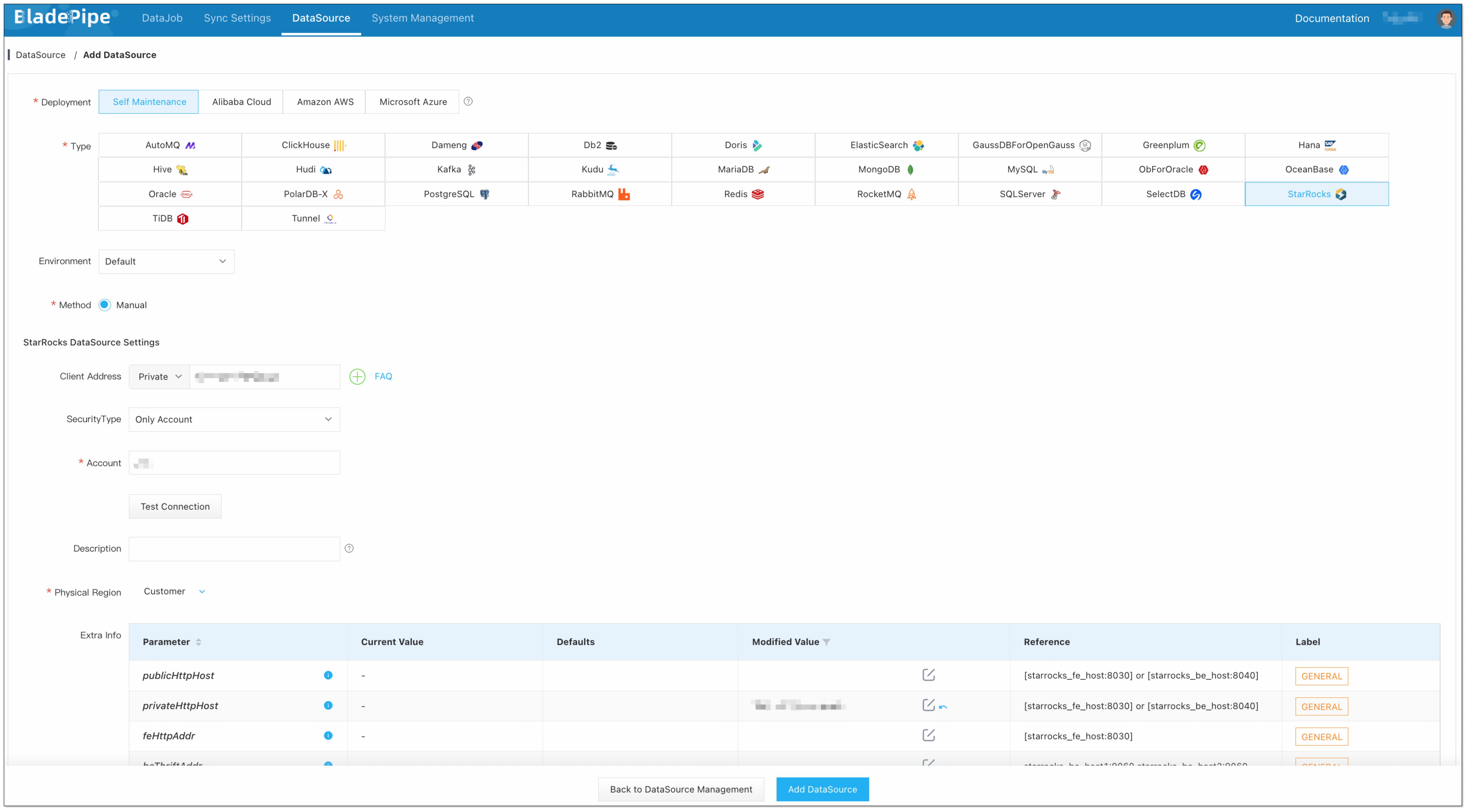 - Click DataSource > Add DataSource.