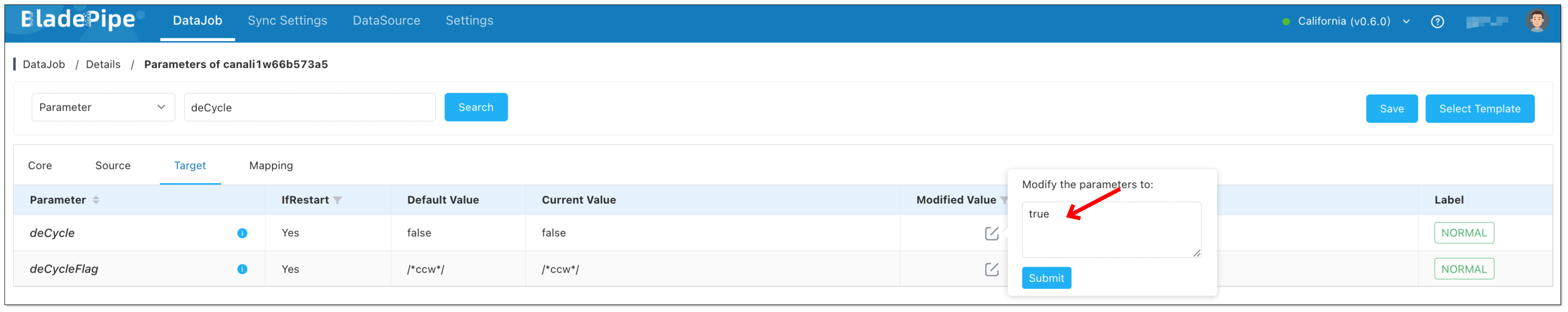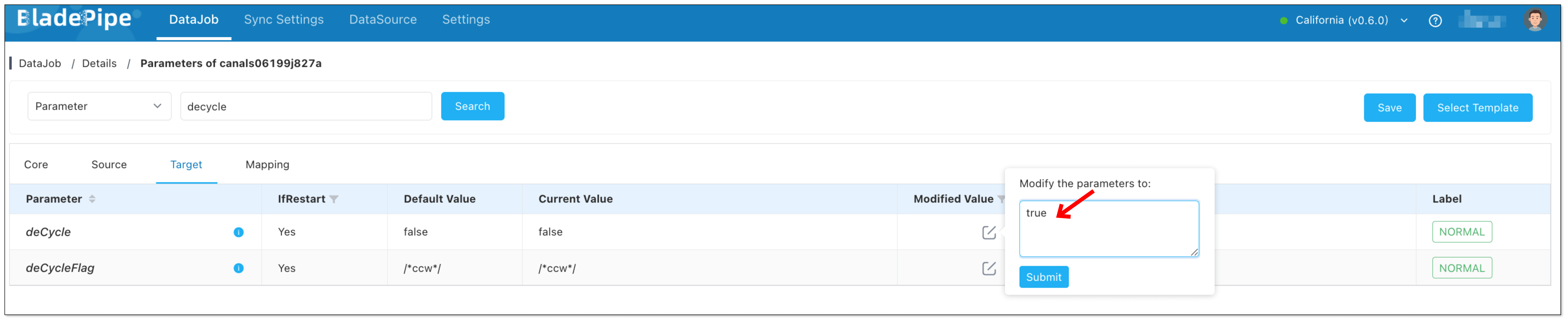 - Log in to the RDS console. Go to the instance details page and click Parameters, then enable binlog_rows_query_log_events.