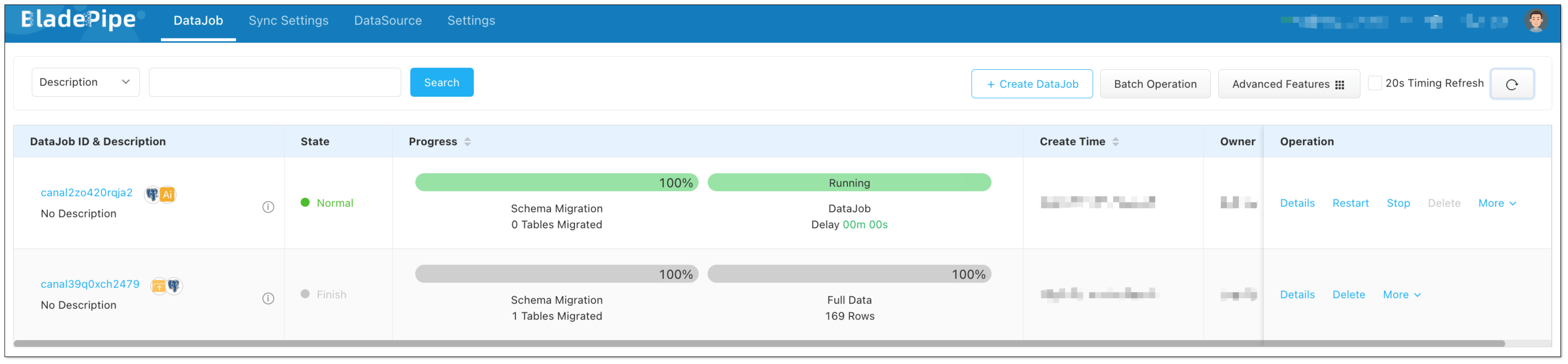 - In Creation page, click Create DataJob to finish the setup.
