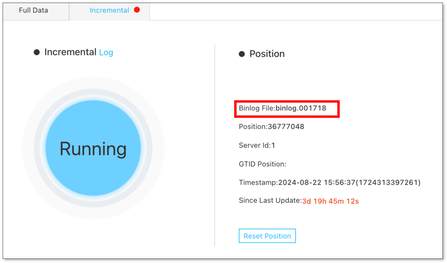 - Check the binary log file that is being consumed at the Details page of the DataJob.