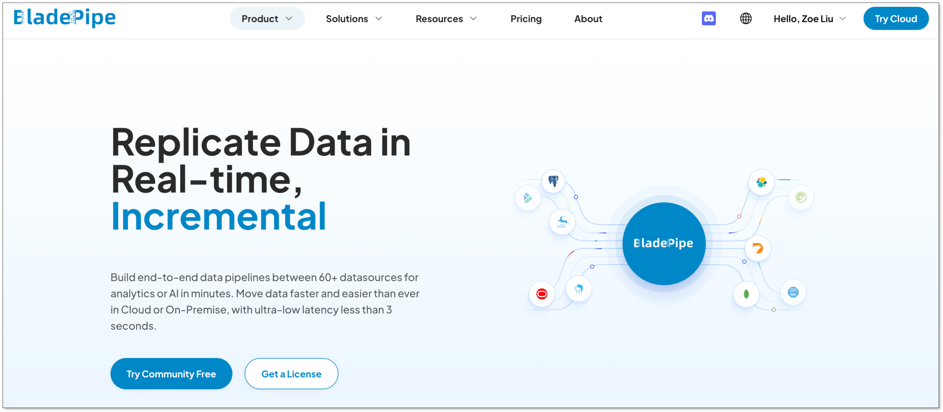 - Log in to BladePipe.