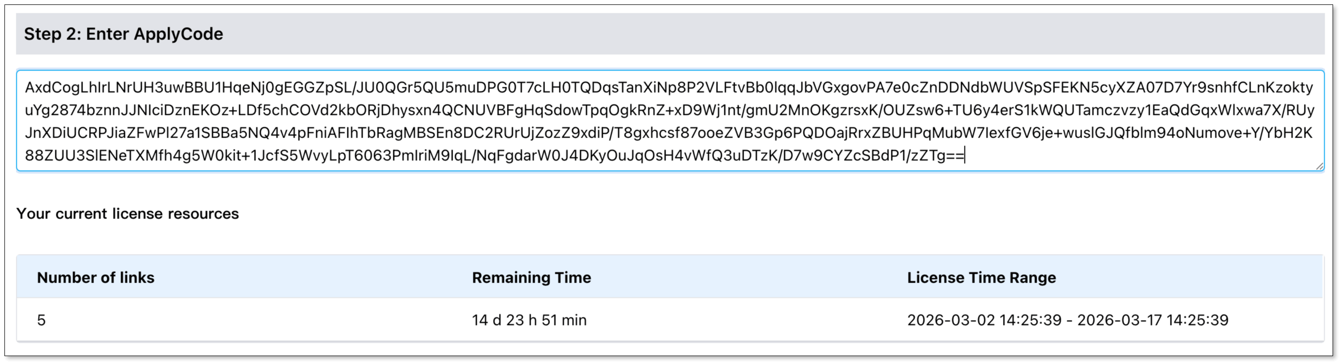 - Apply Code: A unique code for applying for a license.