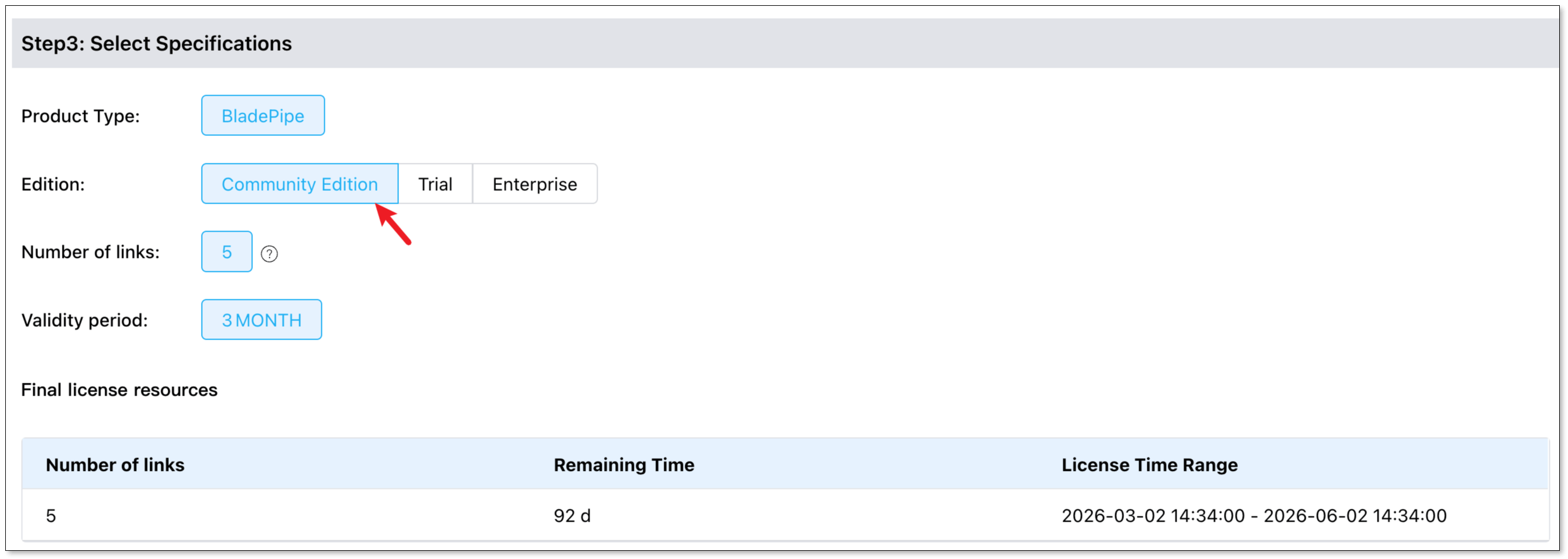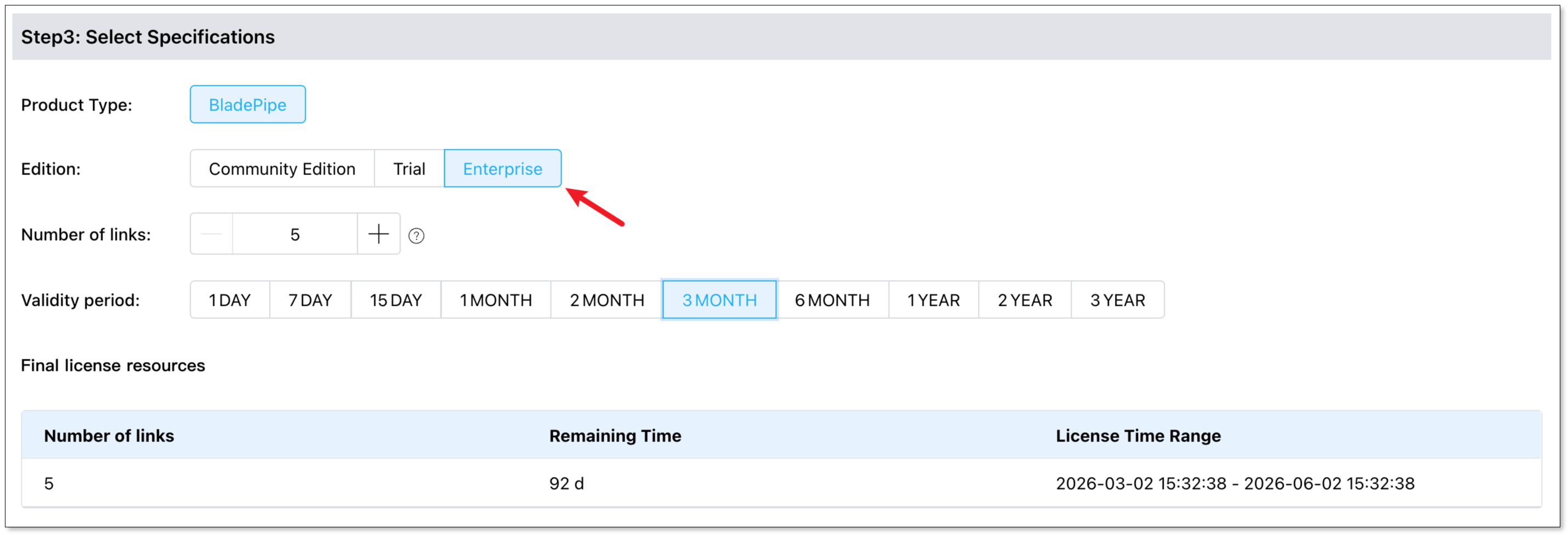 - In Step 3, select Enterprise Edition, and the number of links and validity period. For more details, please check Pricing.