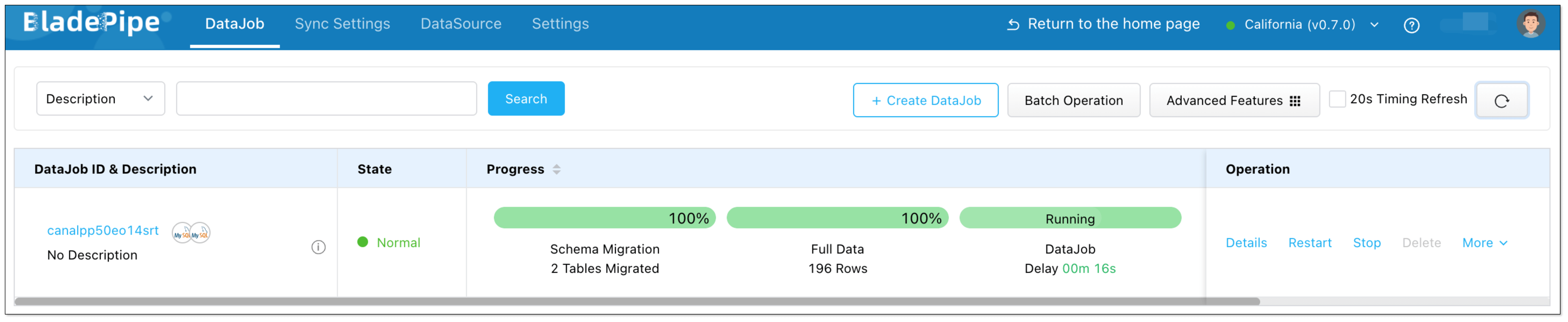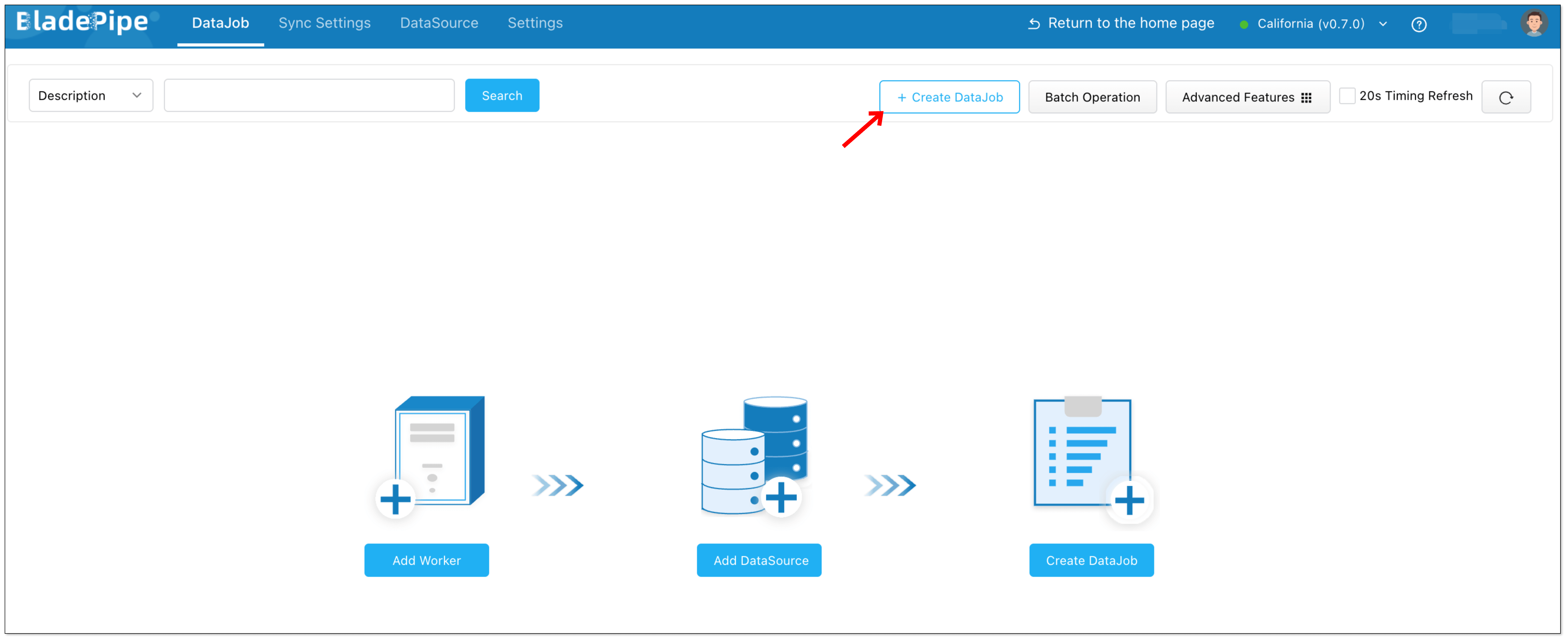 - In BladePipe, click DataJob in the top navigation bar.