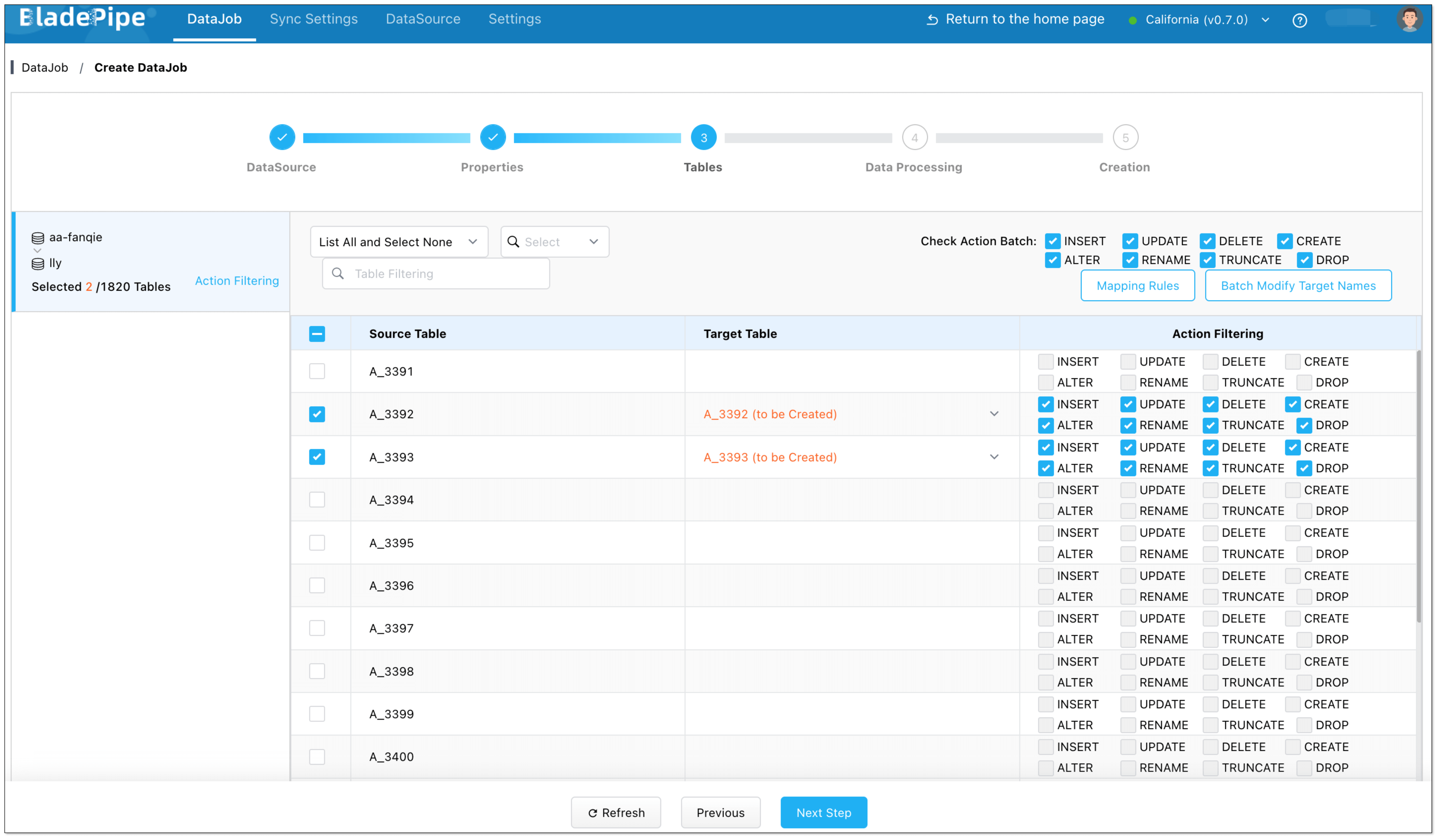 - Choose the tables you want to sync, then click Next Step.