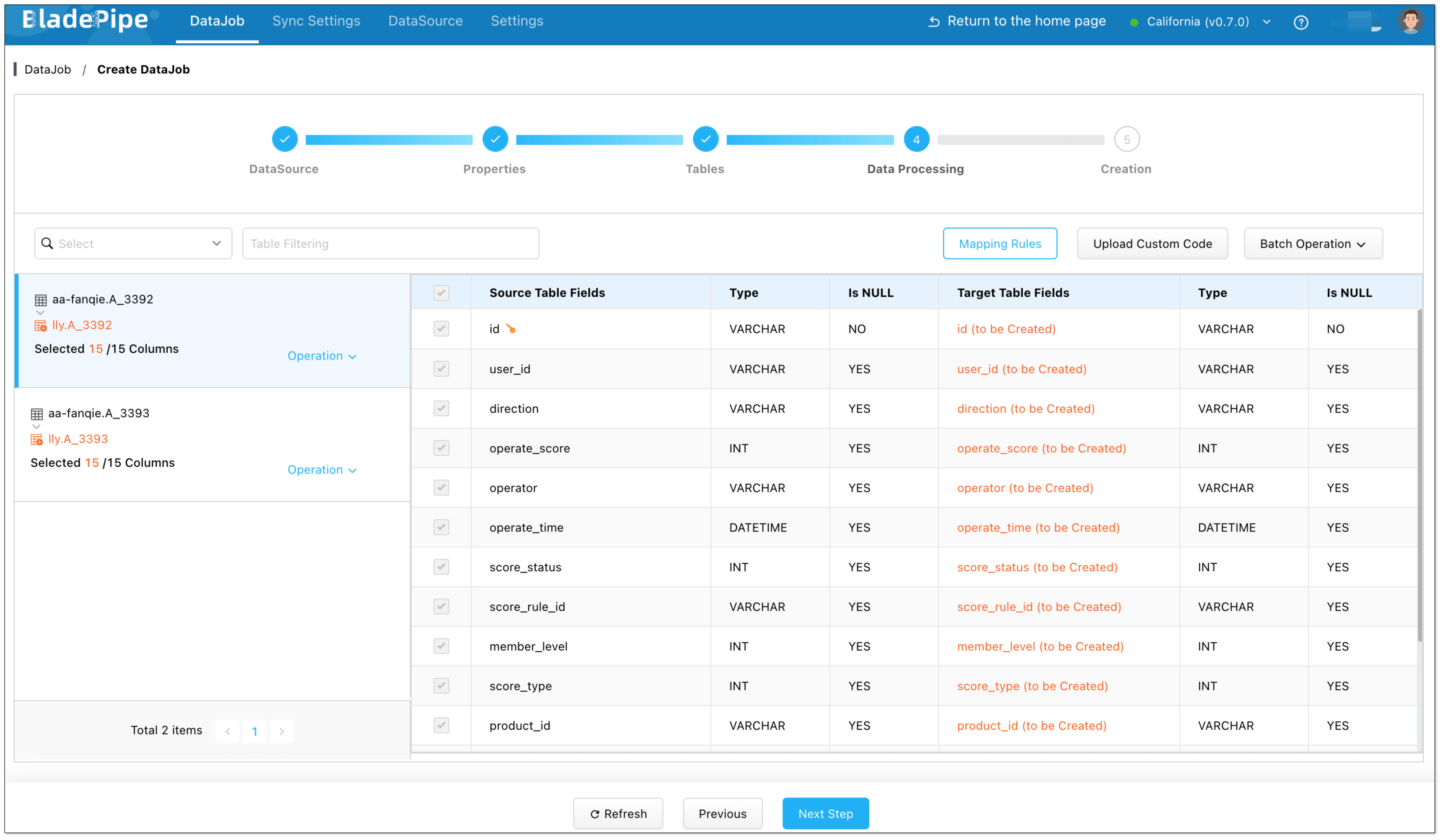 - Select all columns, then click Next Step.